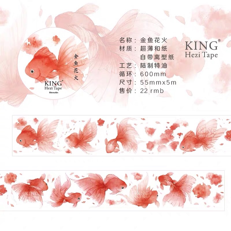 分裝 獨閑工作室手帳膠帶亮面pet 金魚花火自帶離型紙pdd 露天拍賣